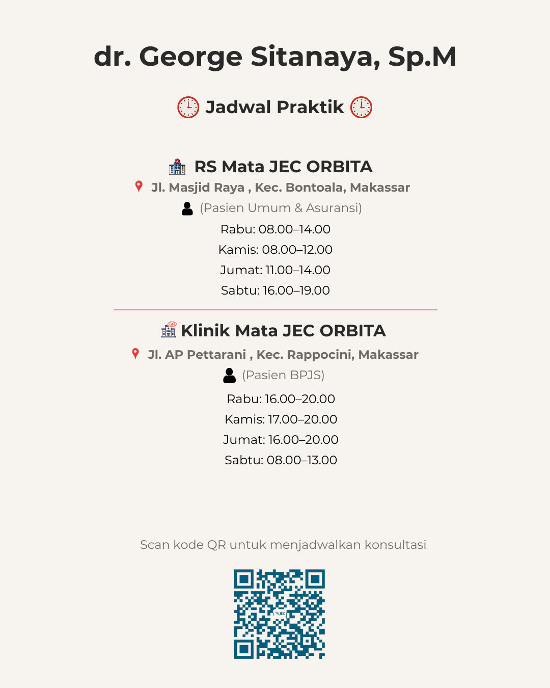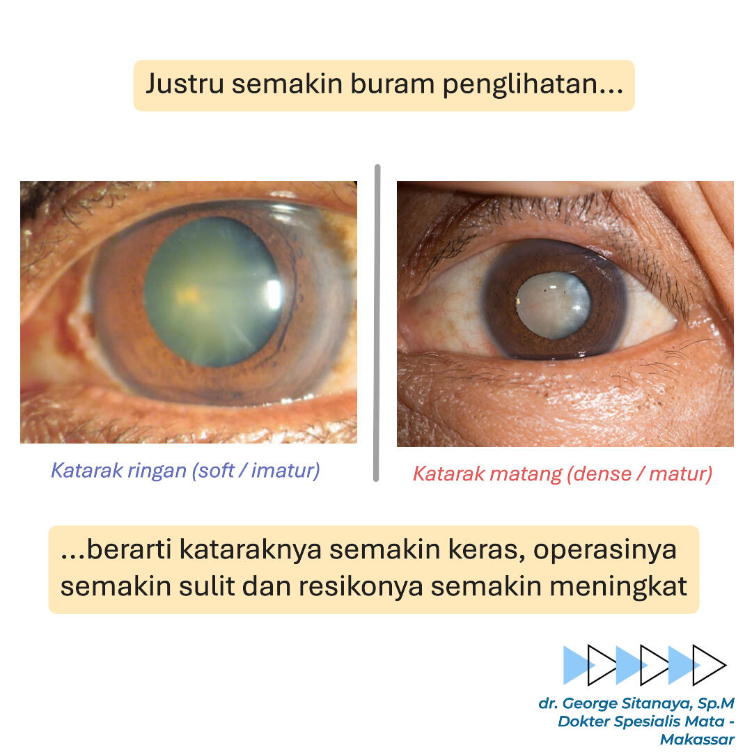 Saya adalah dokter spesialis mata dengan pengalaman lebih dari 10 tahun di dunia kedokteran mata. Selama bertahun-tahun praktik, saya telah membantu banyak pasien dengan berbagai masalah kesehatan mata, menggunakan pendekatan medis yang tepat dan mengikuti perkembangan ilmu terbaru.Bagi saya, mengobati pasien bukan hanya soal memeriksa mata. Setiap pasien adalah individu yang unik, dengan kebutuhan, kekhawatiran, dan harapan masing-masing. Karena itu, saya selalu berusaha melihat pasien secara menyeluruh, bukan hanya dari sisi medisnya saja.Dalam setiap pelayanan, saya mengutamakan empati dan komunikasi yang baik. Saya percaya bahwa rasa nyaman, saling percaya, dan pemahaman yang jelas antara dokter dan pasien adalah bagian penting dari proses penyembuhan.